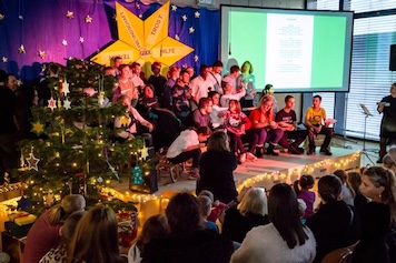 Das eigens für den Auftritt umgedichtete Lied über die Bodelschwingher, welche wie Sterne am Himmelszelt strahlen, hatte sich schon in den Wochen vor der Aufführung im ganzen Schulhaus zum absoluten Ohrwurm entwickelt. Auch beim Publikum kam das stimmungvolle Weihnachtslied gut an und spätestens bei der zweiten Strophe sang der ganze Saal mit.